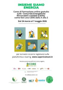 Ci siamo: Sta per partire il corso di formazione sulle Comunità Energetiche Rinnovabili e Solidali (CERS)